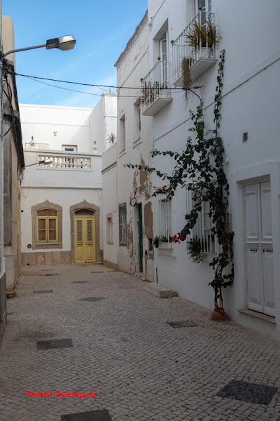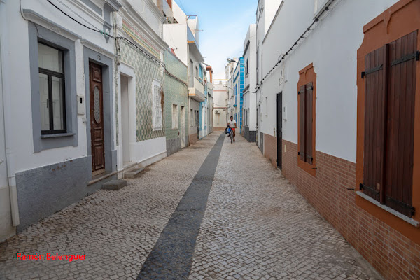 Son apenas 400 o 500 metros de calles estrechas, prácticamente todas ellas peatonales, con edificios encalados y baldosines tradicionales blancos y negros, en las que suelen aparecer recodos sorprendentes. Las casas tienen forma de cubo, de ahí que a la ciudad se la conozca como "la ciudad cubista". Algunas de sus callejuelas forman parte de la Ruta de las Leyendas de Olhão o Camino de las Leyendas de Olhão (Rota das Lendas de Olhão/Caminho das Lendas de Olhão, en portugués),