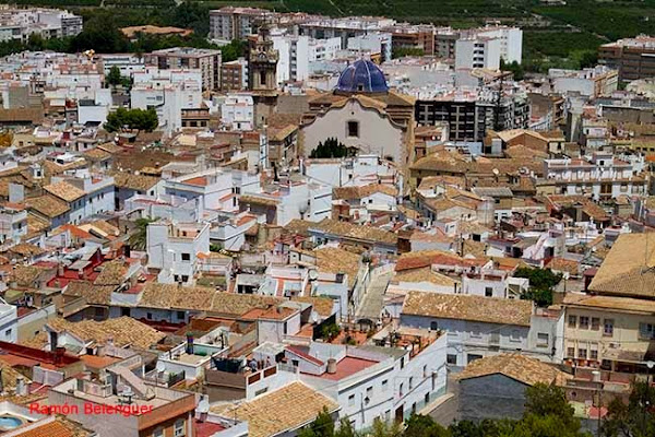 Está edificada en la vertiente oriental del cerro de Santa Anna, sobre la que se asientan los restos del castillo y la ermita que da nombre al cerro. Está formada por un extenso casco antiguo de morfología rural con barrios de casas humildes y otras agrupaciones, completada por los ensanches de trazados rectilíneos posteriores al siglo XVIII que se extienden por el llano. Hay cuatro barrios tradicionales: Santa María, SantRoc, El Pinet y Sant Francesc. El área más antigua corresponde al barrio de Santa María, donde se levanta la iglesia de Santa María la Mayor. Este espacio originario fue amurallado en el siglo XV por Serafín de Centelles con una cerca en la que se abrían los portales del Mar, del Molí, del Raval, del Pi y del Carme. En la parte más elevada se encontraba el palacio de los Centelles. A poniente de este núcleo se desarrolló a partir del siglo XIII la morería, o barrio del Raval, en torno a la mezquita que precedió a la iglesia de San Roque.A comienzos del siglo XVIII sus murallas fueron derribadas por orden de Felipe V como castigo por el apoyo de Oliva a la causa del archiduque Carlos de Austria.Portal de la Virgen María