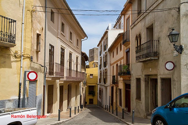Desde la calle de les Moreres, una de las más singulares de Oliva por sus casas blasonadas