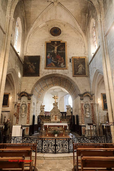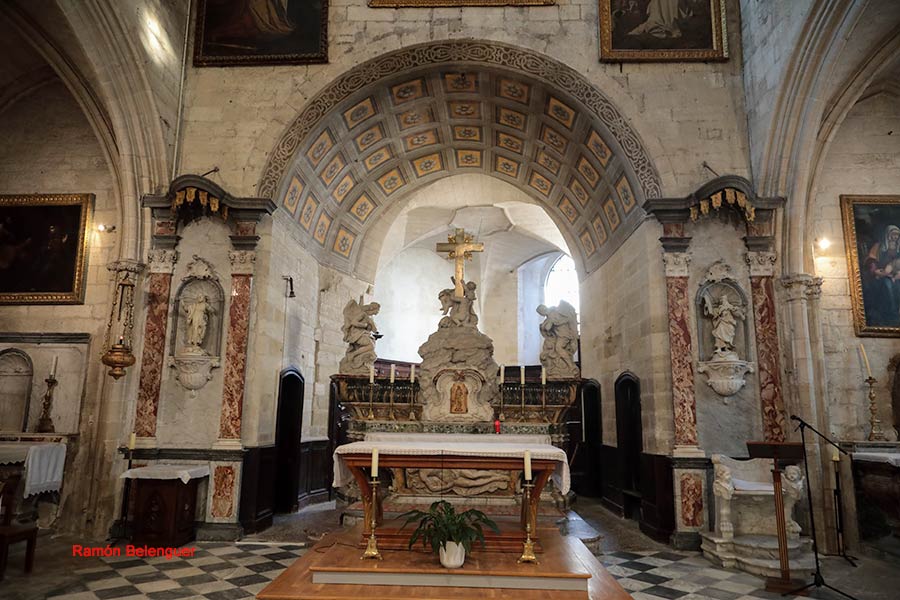 Presenta una planta de salón formada por un ábside o capilla mayor cuadrangular y una nave rectangular, una sacristía pegada al muro norte del ábside y una capilla lateral (la de la Ermida Vella) haci ...