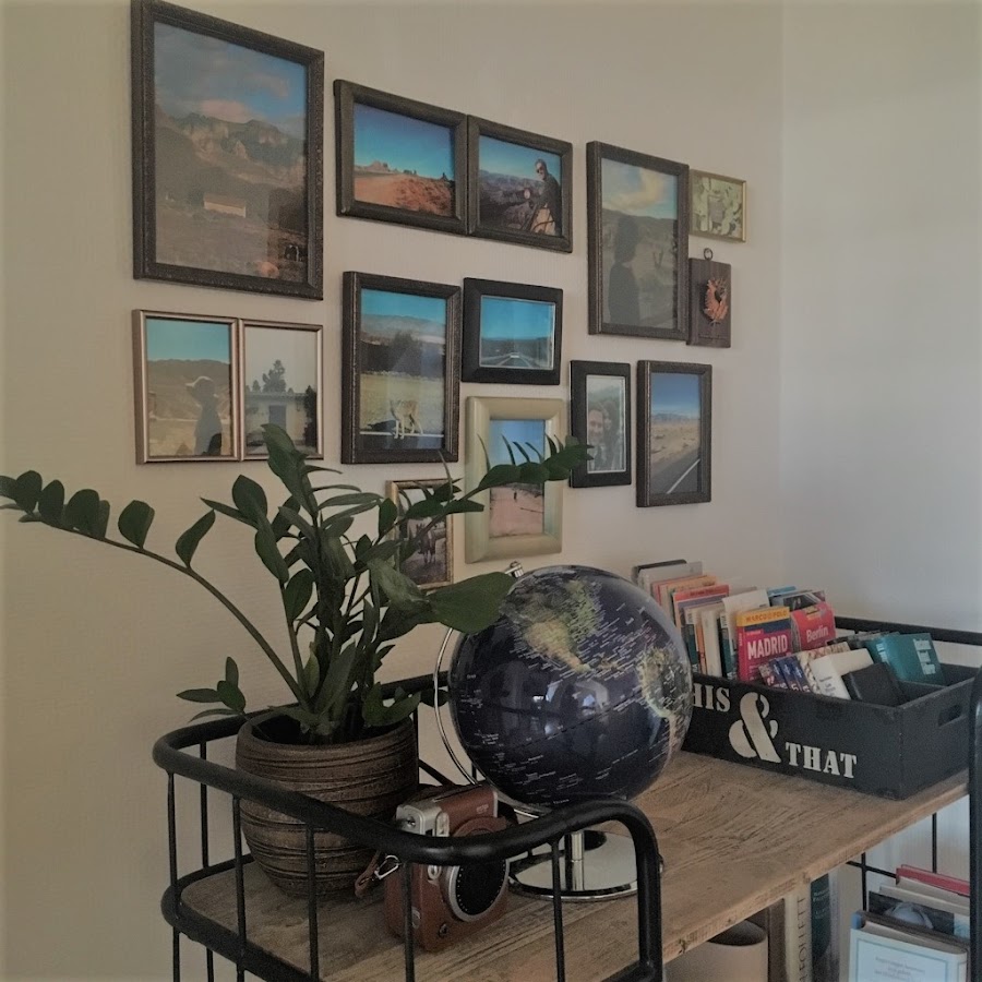 Hacer fotos es algo con lo que disfruto mucho, y aún más si estoy de viaje. Y precisamente son ellas, las que me permiten dar ese aspecto tan personal tanto al blog como a mi hogar. Suelo imprimir y enmarcar las que me gustan más, con el objetivo de que pasen a formar parte de alguna de las composiciones que tenemos colgadas en nuestro hogar. En el salón, tenemos una dedicada a los parques naturales (foto 3) y en nuestra zona de trabajo, tenemos otra inspirada en Nueva York (foto 1). Intento usar los marcos variados tanto en forma, color como tamaño. Y a poder ser, ¡reutilizados! Además de esto, también hacemos diferentes álbunes de fotos por viaje o año. En ellos no solo incluimos fotos, sino también todo tipo de recuerdos que traemos. Intentamos que todos ellos tengan un color y un estilo similar, para que luzcan en la estantería donde están. El buen rollo que sentimos tanto al repasarlos como al enseñarlos, nos motiva aún más a viajar.