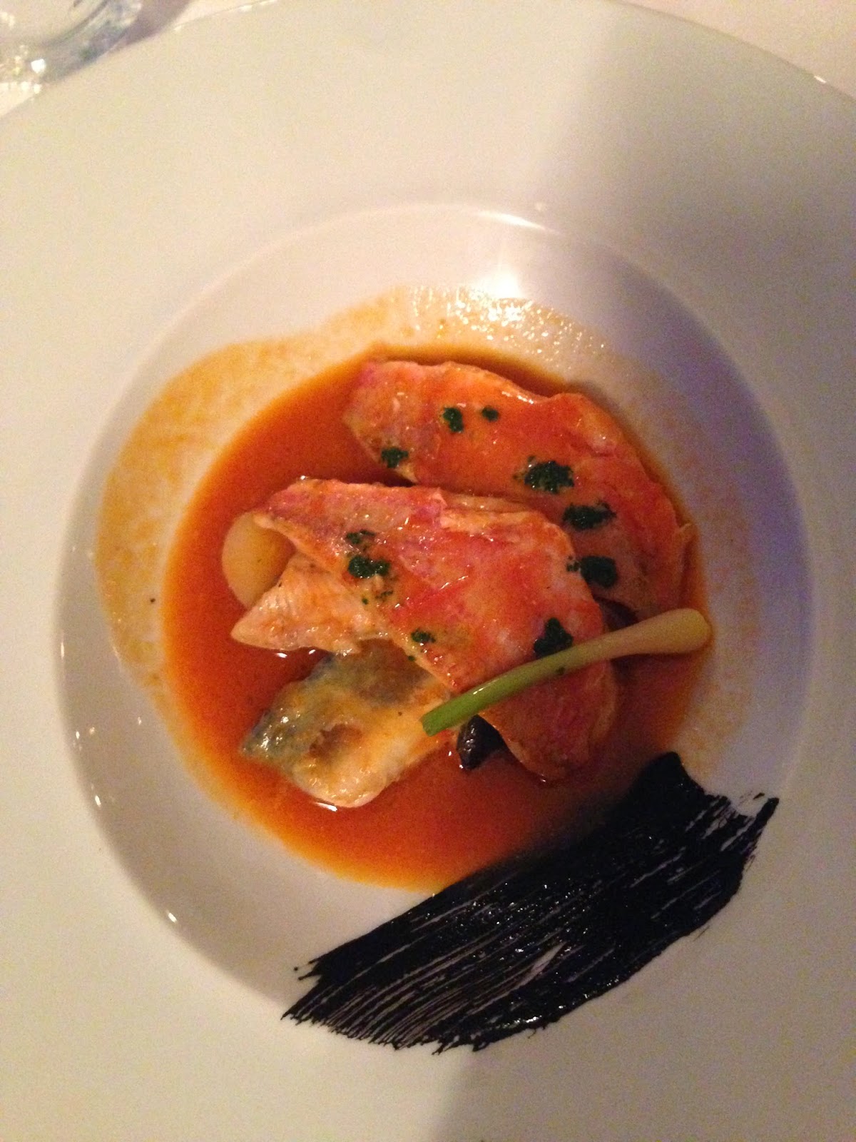 Después pasamos al pescado: "suquet" de rape, maridado con un vino rosado (Murviedro, D.O. Valencia). Yo no soy muy de vinos rosados, he de decirlo. Aunque aquí estaba dispuesta a probar todo lo que nos sacaran claro, ¡¡que para eso ellos son los expertos!! Aquí tenéis el plato: