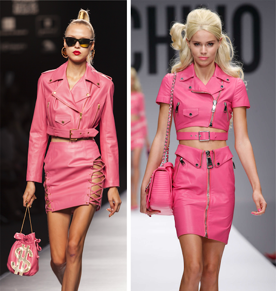 Izquierda: desfile de María Escoté SS"15 durante la Mercedes-Benz Madrid Fashion Week, derecha: desfile de Moschino SS"15 durante la Milán Fashion Week.