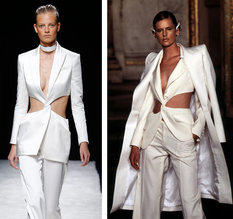 Izquierda: Olivier Rousteing para Balmain SS"15, derecha: Alexander McQueen para Givenchy Haute Couture 1997.