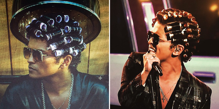Izquierda: vídeo de "Uptown Funk", derecha: actuación en The Voice USA ( 17/12/2014 ).( vía Bruno Mars Instagram. )
