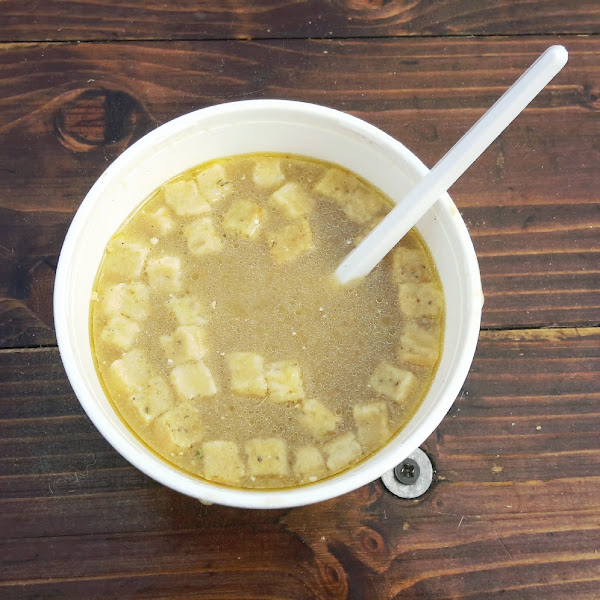 Después de la cerveza volvimos a la plaza de la Lonja y comimos en los puestos. Cada una cogió lo que le apetecía y nos lo comimos juntas en una de las mesas de madera que hay por toda la plaza. Yo tomé una de las típicas sopas;no recuerdo de qué era, pero estaba buenísima.
