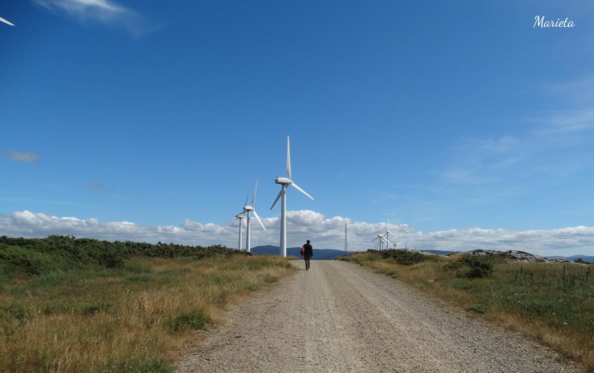 Salimos de O Roncudo por las pistas de los eólicos. Dejando atrás el faro, abordamos los últimos kilómetros de esta exigente pero preciosa etapa.