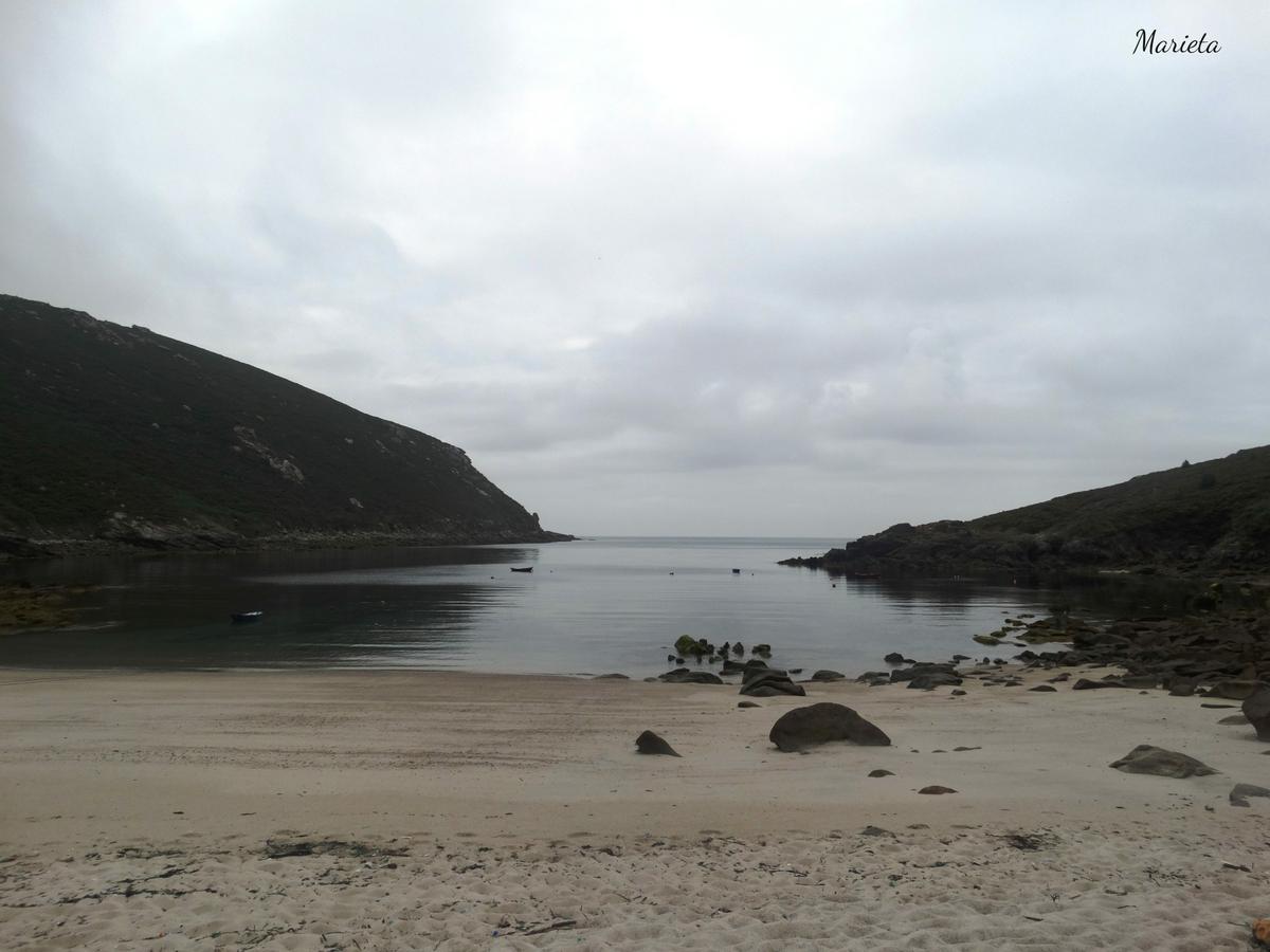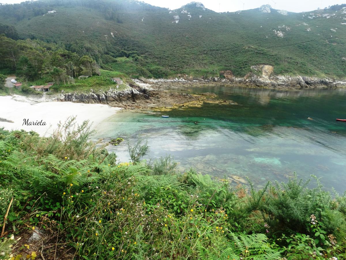 Al final de una pequeña ensenada aparece la preciosa playa da Barda. Rodeada de monte, solitaria, es un anfiteatro natural lleno de encanto. Esta mañana tan sólo nosotras y una gaviota la habitamos, todo un lujo para los sentidos.