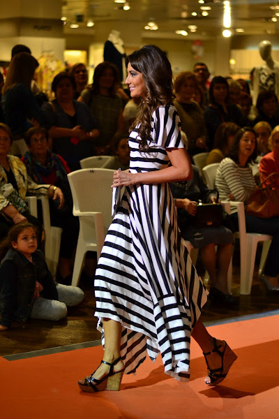 En esta ocasión, igualmente quisieron que me implicase participando activamente de un modo más especial, si cabe, en calidad de modelo (como podéis comprobar en las siguientes imágenes), así que, durante unas horas abandoné la red por la alfombra y me convertí en modelo por un día con toneladas de maquillaje y diseños de lujo para hacer mi particular paseo entre luces y flashes, al ritmo de la música que pinchaban Narci y Saúl DJs y colmada de aplausos que con cariño me brindaban los espectadores en general y, muy especialmente, mis compañeras de profesión; mujeres trabajadoras, actuales, con estilo, a quieres les encanta la moda, que no se perdieron detalle alguno del desfile desde primera fila, a pie de pasarela, muy atentas a todo lo que sucedía.