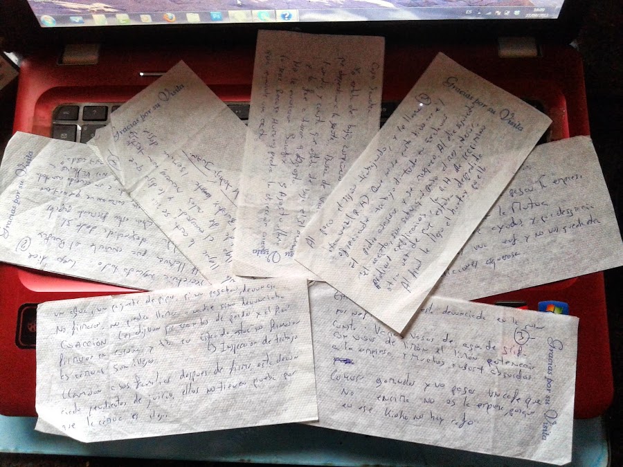 Quedamos en las Brujas cerca de nuestras casa, a contar nuestras vidas después del verano, risas por un lado, anécdotas por el otro, hasta llegar a la mala noticia de donde ella estuvo trabajando. Lo que me estaba contando,¡no daba crédito!, no me cabía en la cabeza tanta información, y dije, "esto lo tengo que escribir", y cogí servilletas y boli, intentando tomar nota de todo lo que me estaba diciendo.