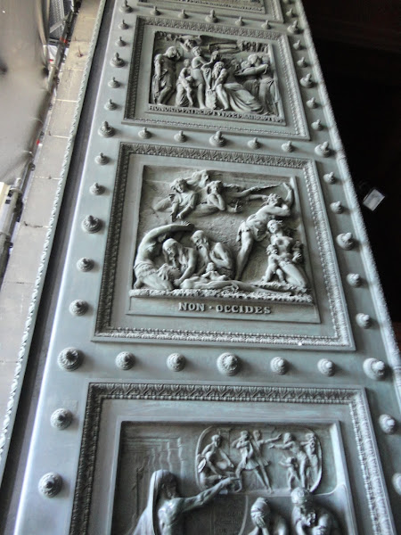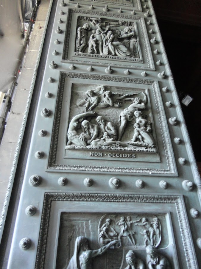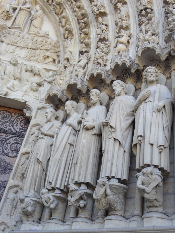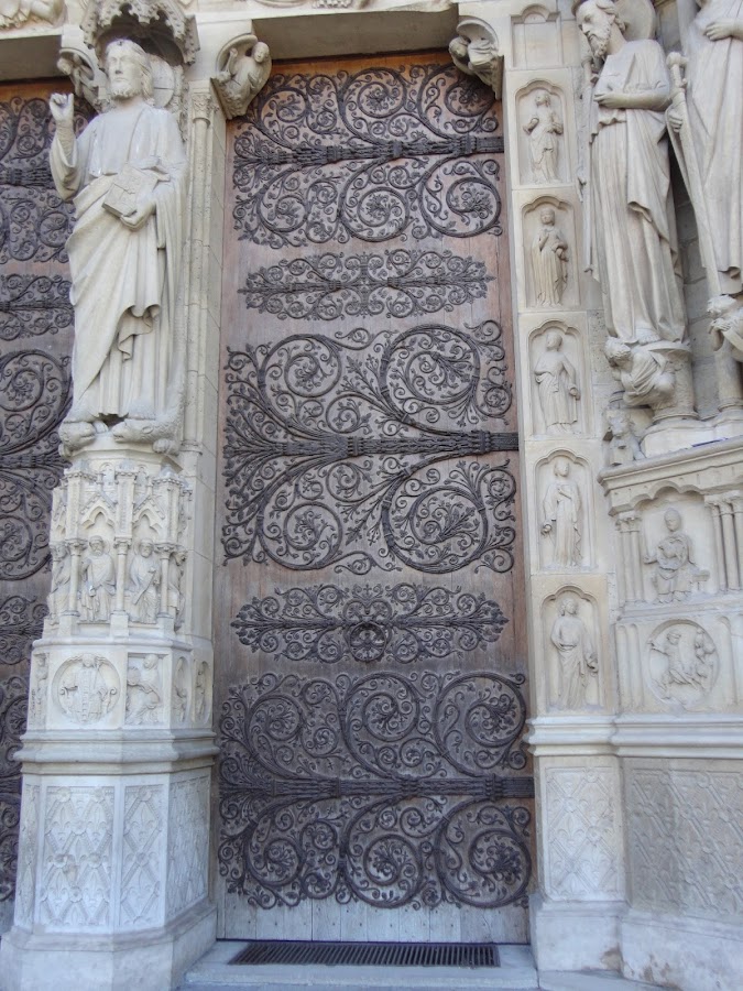 Una de las puertas frontales de la Catedral Gótica Notre Dame de París.