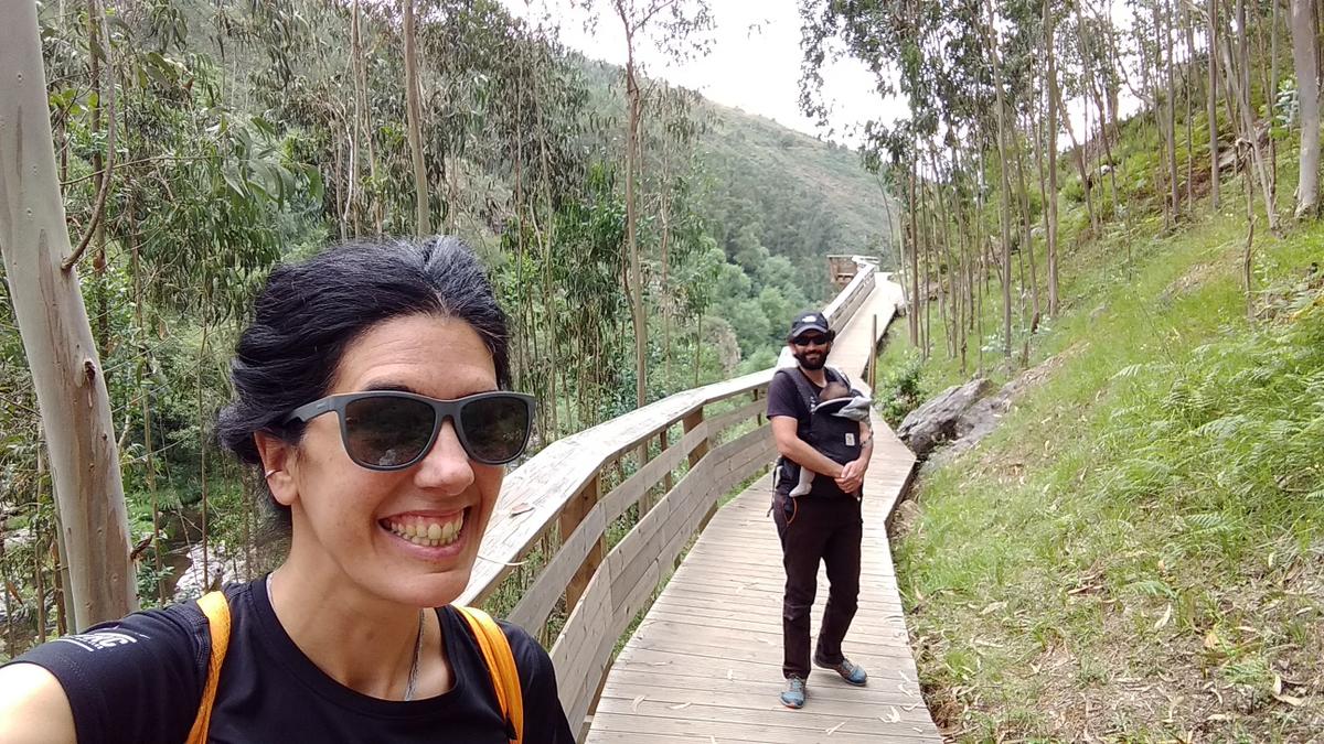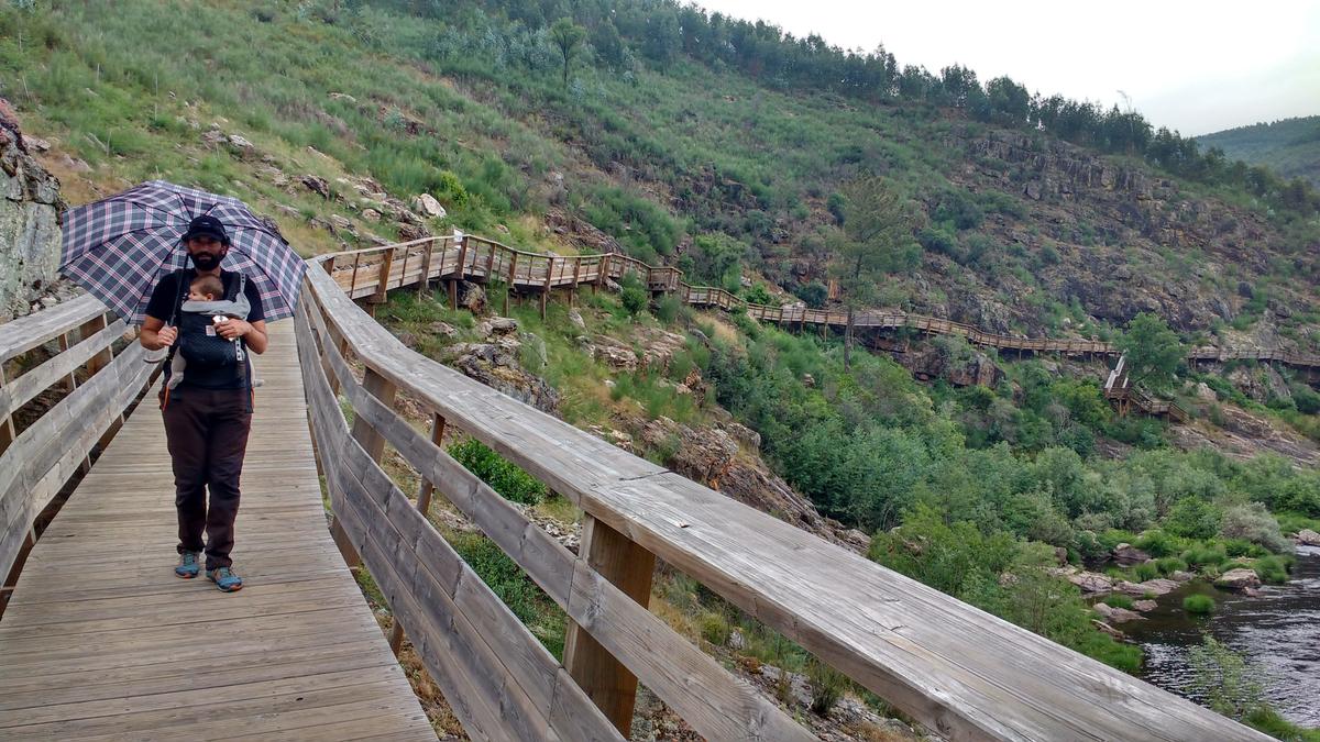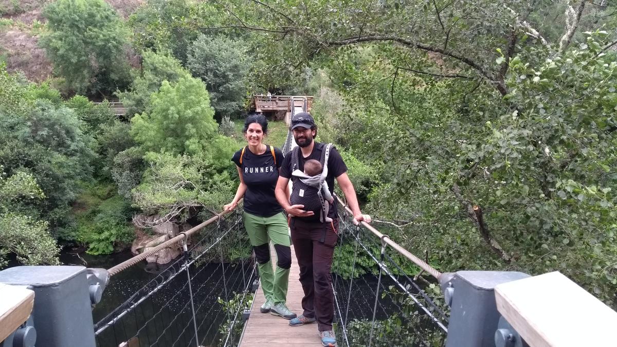 La excursión es una pasada, son 8 kilómetros de ida y 8 de vuelta si no tienes varios coches, tiene dificultad alta y es lineal. Nosotros como íbamos con bebé la verdad es que teníamos alguna duda ya que no hay escapes (bueno, si 3) pero esos escapes nos llevarían a una carretera y nuestro coche está a la entrada así que estaríamos igual que si nos quedáramos en la pasarela. El puente tibetano es a mitad del camino.