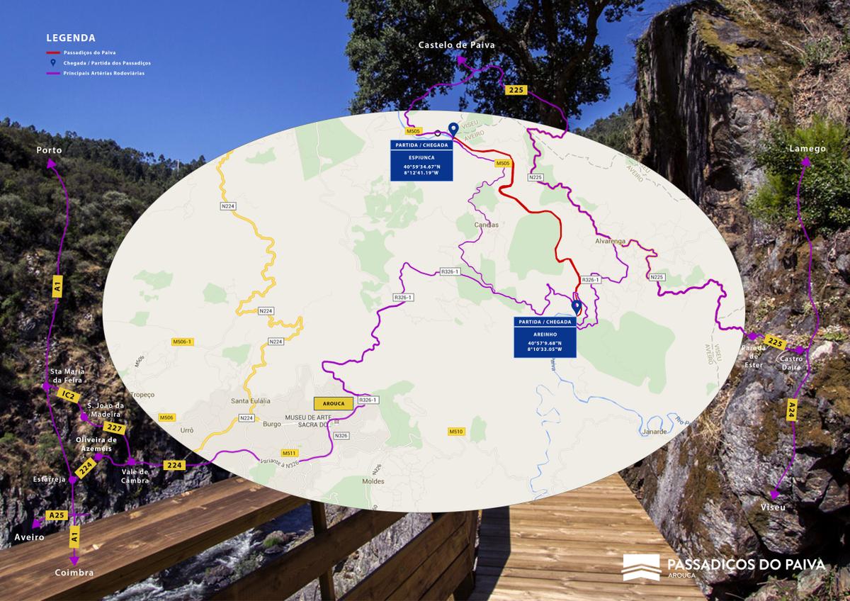 ¿Cómo llegar? se encuentran en la margen izquierda del río Paiva, en el municipio de Arouca, distrito de Aveiro. Los accesos están hechos por los extremos de los mismos y la ruta puede tener sus inicios en Espiunca o Areinho.