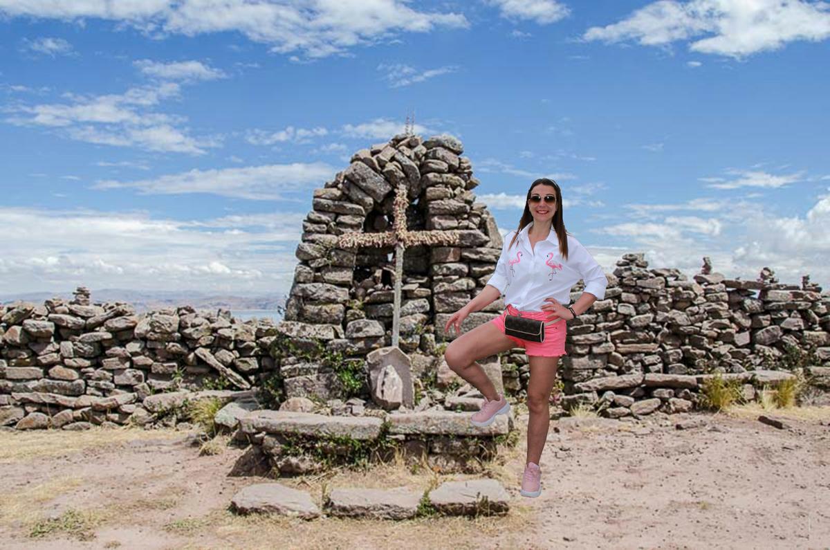 Éste se encuentra en el punto más alto de la misma, y desde ahí hay unas vistas preciosas de Lago Titicaca. Los restos del santuario se atribuyen a una cultura preinca y dicen que es un lugar lleno de energía ( no sé si la hay o no, pero desde luego cuando llegas después de 45 minutos, no te queda ninguna….jajaja)