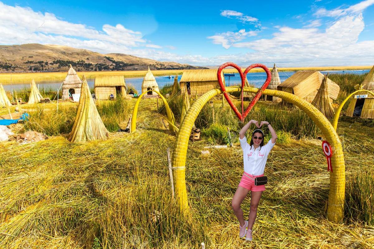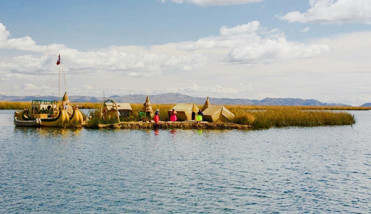 Esta islas, conocidas como las islas flotantes de uro, son un conjunto de superficies artificiales construidas de totora, una planta que crece en el lago. La construcción de estas islas se forma tejiendo esta planta por los uros, habitantes de las islas, los Aimaras.