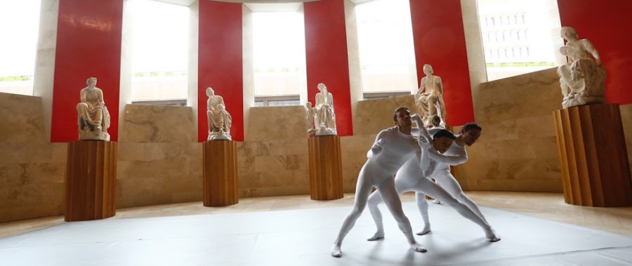 La sala de las Musas del prado en la que están representadas las musas de las artes clásicas Clío, Terpsícore, Calíope, Urania, Erato, Melpómene, Polimnia, Talía y Euterpe,acogió tres escenas de baile de diferentes estilos: Josue Ullate (que fue el que asaltó el museo Reina Sofia y bailó ante el Guernica hace dos años) y Marlene Fuertes, dos bailarines del Ballet comunidad de Madrid que dirije Victor Ullate, han representado un fragmento de una nueva coreografía de la compañía "Pastoral" con ella hicieron referencia al ballet clásico.