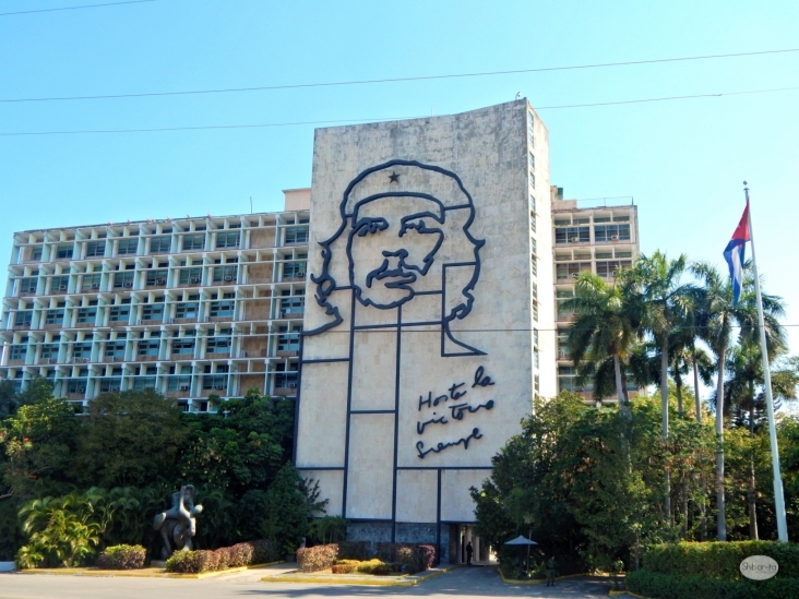 Vedado también es conocido por albergar la famosa Plaza de la Revolución, un gigante espacio abierto donde se dan cita los cubanos en las grandes concentraciones políticas. Allí se encuentra actualmente la Sede central del Gobierno, el Ministerio de interior y las famosas fachadas con las siluetas del Che Guevara y Fidel Castro con sus célebres frases "Hasta la victoria siempre" y "Vas bien Fidel". Al otro extremo de la plaza se encuentra el Memorial a José Martí formado por una especie de obelisco de más de 130m de alto y la estatua en mármol de José Martí.