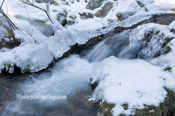 Imagen invernal de uno de los arroyos que descienden por la cara norte de la Sierra de Guadarrama Segovia. Castilla y León. España