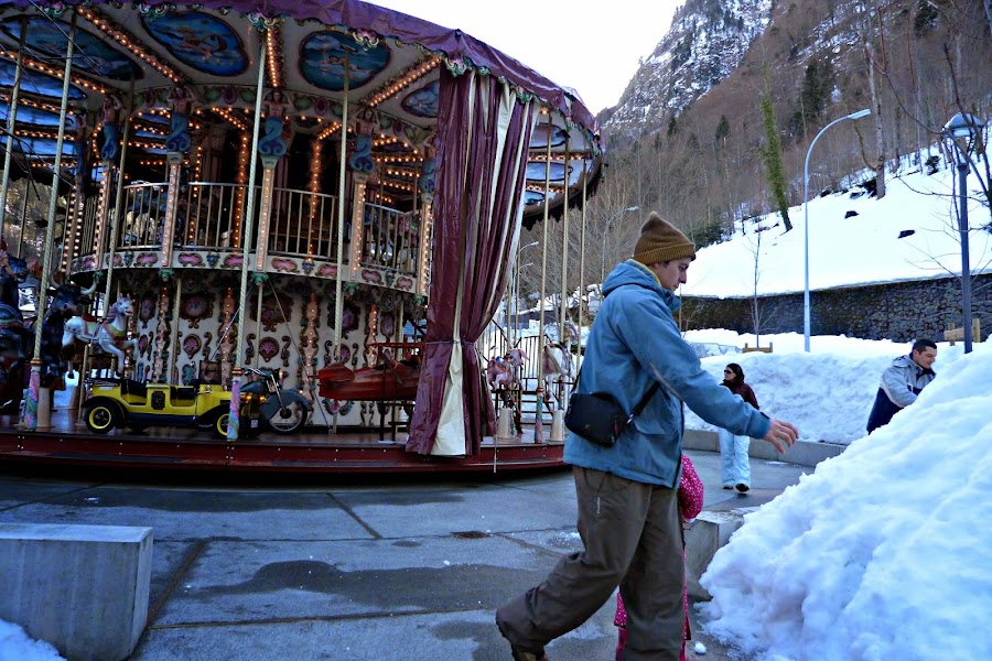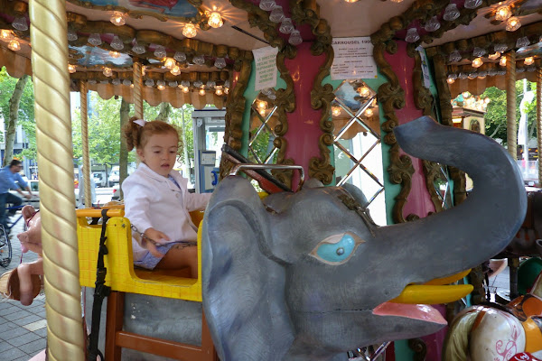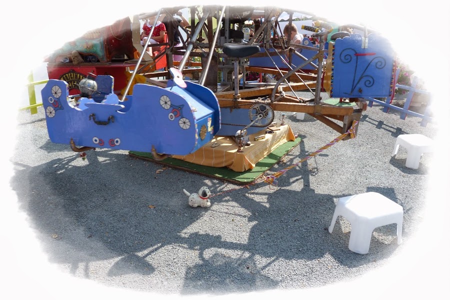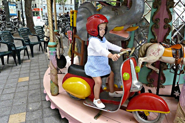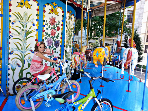 Como puedes ver, un señor pedalea y hace que el carrusel gire y además suene música. Verdaderamente original. Se ve antiguo y artesanal, la verdad que cuando lo vimos nos dejó a todos, con la boca abierta. ¿Qué te parece? desde luego de todos los que he tenido oportunidad de ver, es el que mas me ha gustado. Pintoresco ¿verdad?