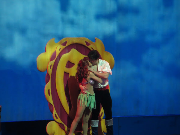 Tras el descanso esperaban los dos platos fuertes del espectáculo, para mí las dos mejores representaciones: La Sirenita y Frozen. De la primera actuación cabe destacar el baile entre el príncipe Erik y la Sirenita, así como la canción cantada por el cangrejo Sebastián, Debajo del Mar. También estuvo muy logada la actuación de Úrsula, así como el globo que sacan al final cuando Erik la mata.