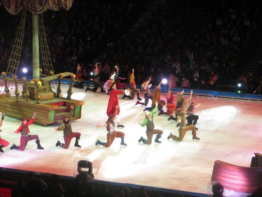 El siguiente cuento era Peter Pan, en este caso lo que más llamó la atención fue cómo volaban algunos de sus personajes, así como el cocodrilo que sale al final y se come al capitán Garfio. Para mí este cuento se me hizo un poco largo, aunque tengo que destacar la coreografía que hacen todos los piratas juntos en la pista de patinaje.