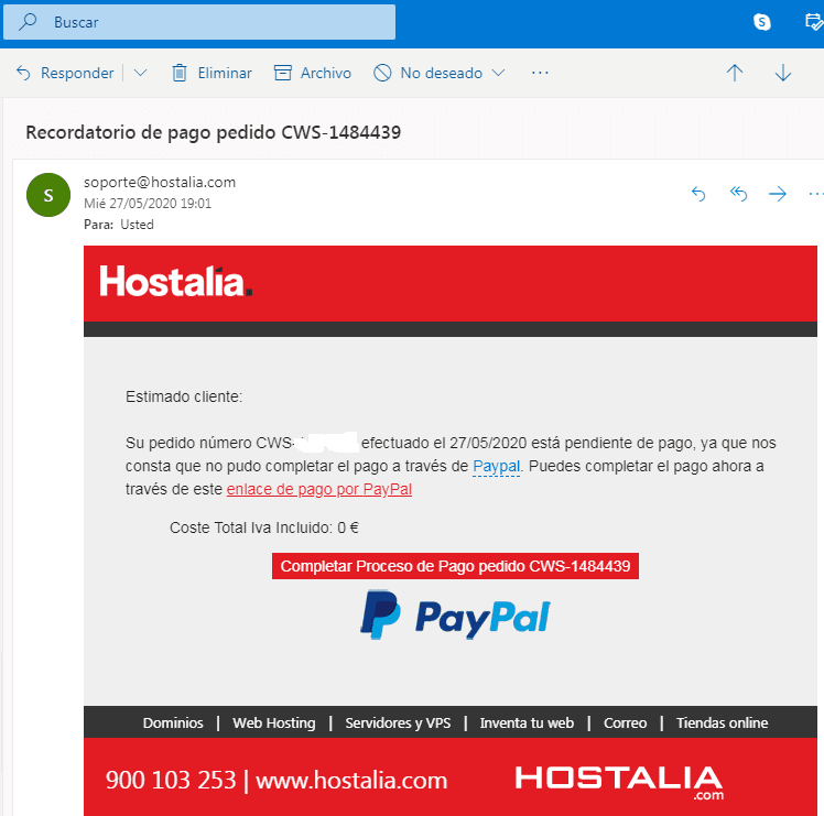 ¿Recordatorio de pago de qué? ¿De un dominio gratis?