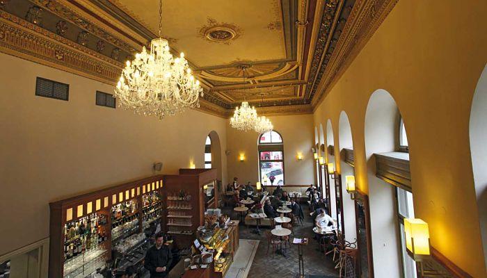 Más tarde en la noche, el restaurante ofrece un menú semanal de platos tradicionales e internacionales. De particular interés los cangrejos europeos o los caracoles checos son una tentadora alternativa a los platos tradicionales. Es en las mañanas que la cafetería es más popular con los lugareños. No dejes de probar su muy buscada tortilla de col rizada y la selección de pasteles.