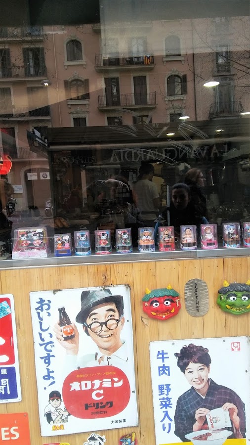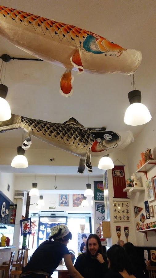 Y después he quedado en Plaza España con el trastico, hoy es surprise, dónde me llevará a comer???? jajaja!! lo primero situarse en el mapa, no sé si llegaremos pues la orietación del trasto es bastante malilla, menos mal que el señor google maps es una buena ayuda, nos hemos bajado en el metro de Urgel y chino chano hemos subido la calle, a la altura de Consell de Cent, en Comte Urgell 112, se encuentra el Restaurante "Yatai", un restaurante japonés muy original, como su nombre indica "Puesto tienda" típico carro japonés donde se vendía Ramen u otras comidas calientes.. la verdad que me ha gustado el ambientillo que había, mucho color, cultura japonesa y sevicio excelente, os dejo una fotitos del local
