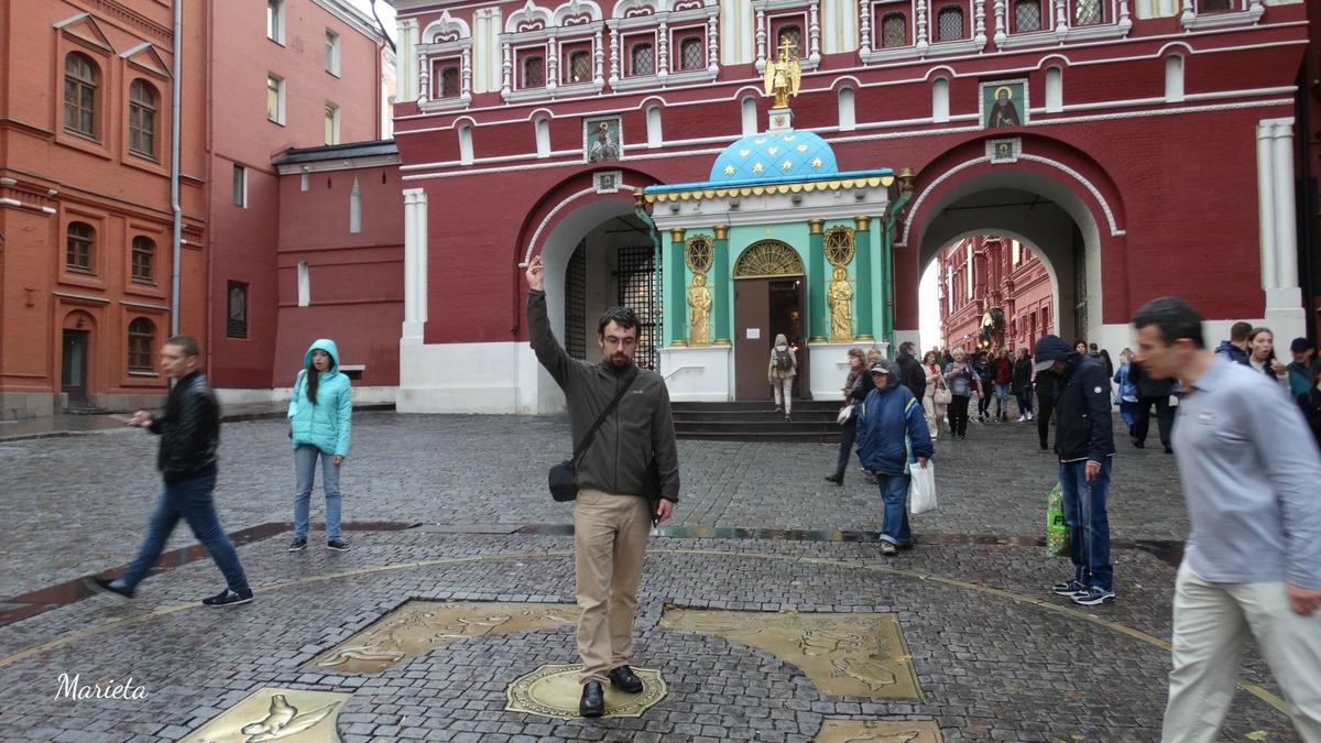El “kilómetro cero” de Moscú, representado por una placa de bronce en el suelo, es el lugar para la foto típica. La leyenda dice que si te sitúas en él y lanzas una moneda por encima del hombro volverás a la ciudad (y nosotros lo hicimos, por si acaso funciona, jejejee)