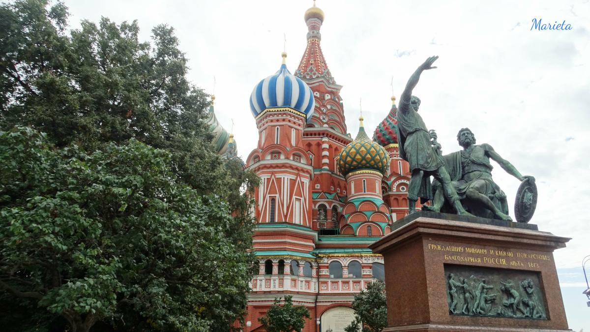 La recorremos despacio admirando sus dimensiones, no es de extrañar que aquí pudiese aterrizar una avioneta a finales de los ochenta. Al fondo de la plaza nos aguarda uno de nuestros objetivos primordiales a visitar, La Catedral de San Basilio. El nombre auténtico del monumento más fotografiado de la ciudad es el de Catedral de la Virgen de la Intercesión. Construida a mediados del siglo XVI por orden de Iván IV el Terrible para conmemorar la conquista de Kazán y la victoria frente a las hordas tártaras.