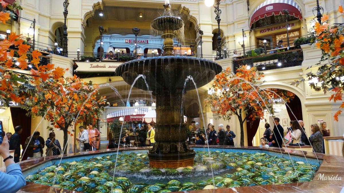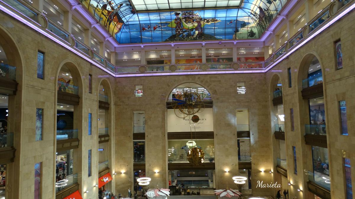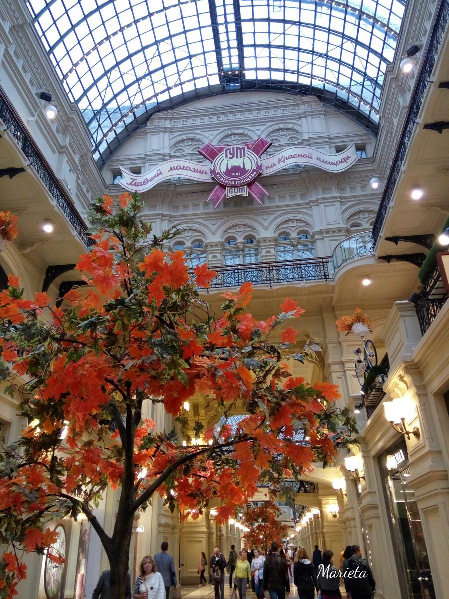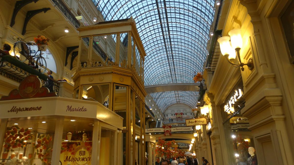 Aprovechando que se acerca la hora de comer nos encaminamos al GUM, el centro comercial más elegante y exclusivo de Rusia. El impresionante edificio es un maravilloso ejemplo de la arquitectura burguesa rusa, sólo por eso ya merece la pena su visita. Construido entre 1890 y 1893, ha tenido diferentes usos a lo largo de su historia: aparte de grandes almacenes, Stalin lo utilizó para albergar sus oficinas, y tras la muerte de su esposa lo convirtió en su mausoleo. En 1953 el estado ruso le devolvió su uso comercial, siendo hoy en día un punto de gran afluencia turística, donde se alojan las tiendas de las marcas más lujosas.