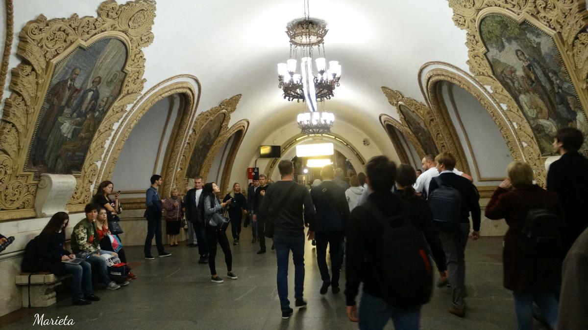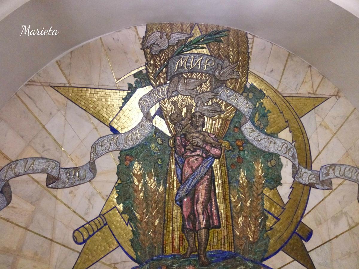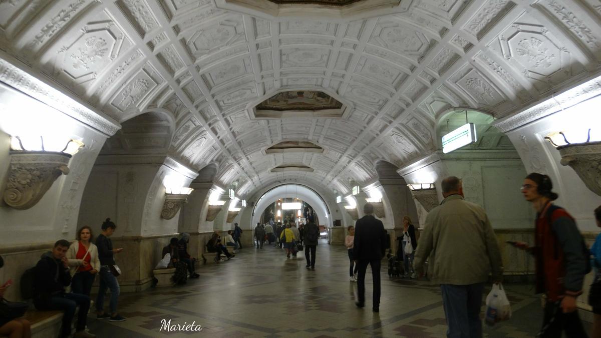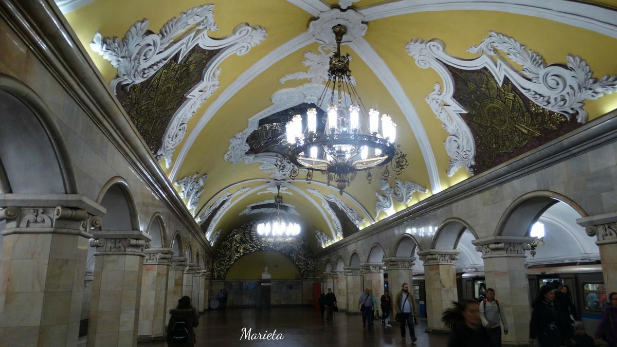 Si vais a Moscú, un recorrido en metro por algunas de sus preciosas estaciones se hace imprescindible, os lo recomiendo absolutamente. Nosotros visitamos varias, algunas en la línea 2 (verde) y 3 (azul), aunque la mayoría de las fotos corresponden a estaciones de la línea circular 5 (marrón). Os dejo aquí el mapa de las diferentes líneas y estaciones. Gran parte del metro fue proyectado en tiempos estalinistas, en la década de los treinta. La primera línea de metro tenía 11 kilómetros, se terminó en 1935 y las obras duraron dos años. En 1938 se hizo la segunda línea, pero las mejores estaciones son las de la década de los cincuenta.