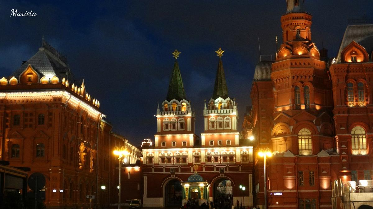 Al igual que sucediese en San Petersburgo al caer la noche, pudimos comprobar que en Moscú también iluminan la ciudad de una forma maravillosa.
