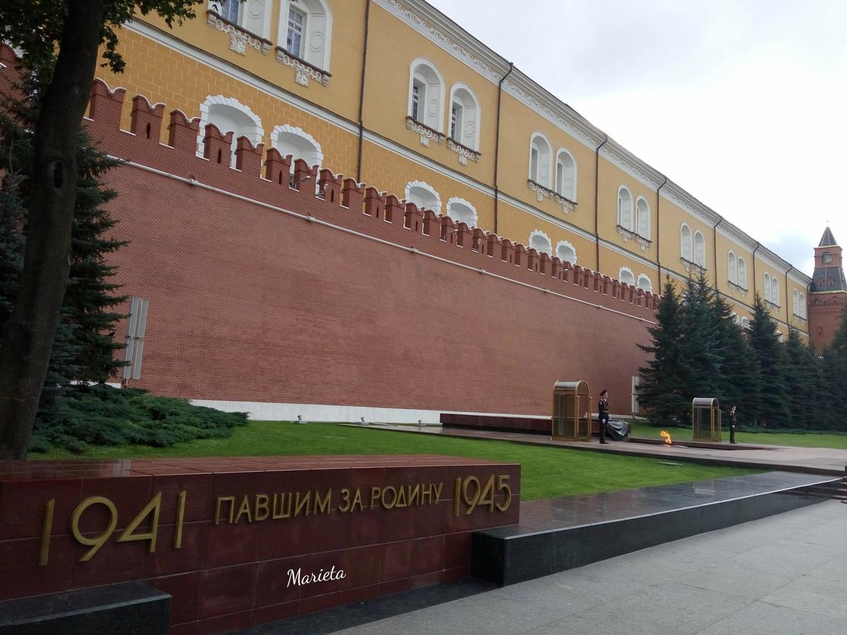 En estos jardines, frente al muro del Kremlin, se encuentra la Tumba del soldado desconocido. Inaugurada en 1966 para conmemorar el 25 aniversario de la victoria soviética en la Batalla de Moscú. En el centro del monumento hay una lápida con una estrella de bronce de cinco puntas, en el centro de la misma arde La llama eterna. En la lápida hay una inscripción que dice: “Tu nombre es desconocido, tu hazaña es inmortal”