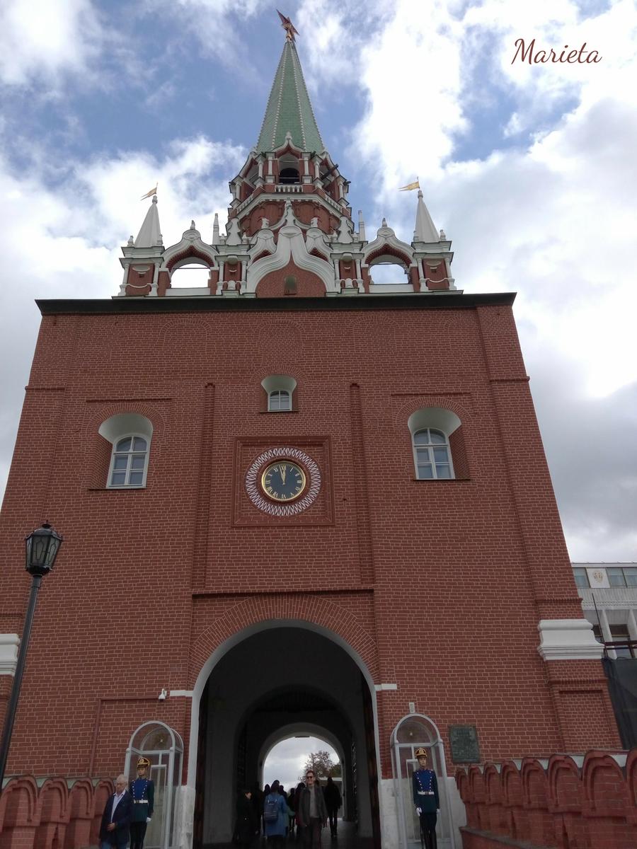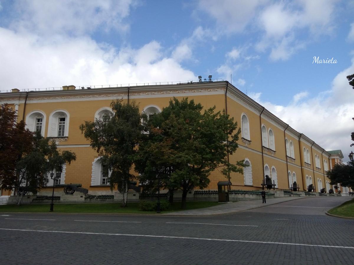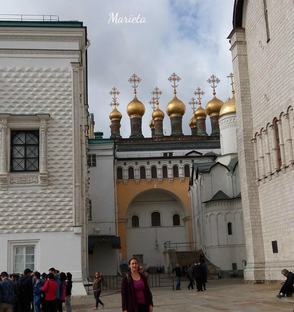 Nos dirigimos después al Kremlin. Dos kilómetros de murallas de los que emergen veinte torres. Esta ciudad dentro de la ciudad, se construyó sobre una colina y constituye el corazón de Moscú, enmarcado por la Plaza Roja, el río Moscova , y los Jardines de Alejandro.