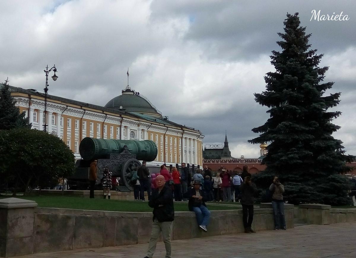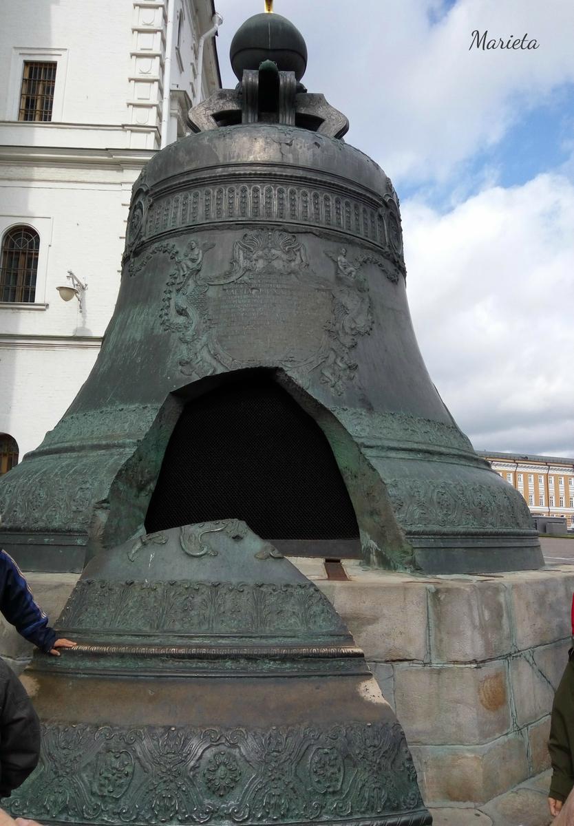 Próximo a la plaza, descubrimos el Cañón del Zar. Fundido en 1586, sus cuarenta toneladas de bronce lo convierten en el cañón más grande del mundo, y el menos utilizado, ya que nunca llegó a dispararse. Otro elemento curioso es la enorme Campana de la Zarina, fundida entre 1733 y 1735, estaba destinada a ser colgada en lo alto del Campanario de Iván el Terrible. Con sus 6,14 m de altura, sus 24 toneladas, y sus 6,6 m de diámetro capaces de albergar a más de veinte personas, nunca pudo repicar. Cuando se estaba izando a lo alto de la torre, el andamio sufrió un incendio que provocó la caída y rotura de la misma. Aunque la versión más razonable es que se quebró cuando el foso de fundición fue inundado por el agua empleada en apagar el incendio.