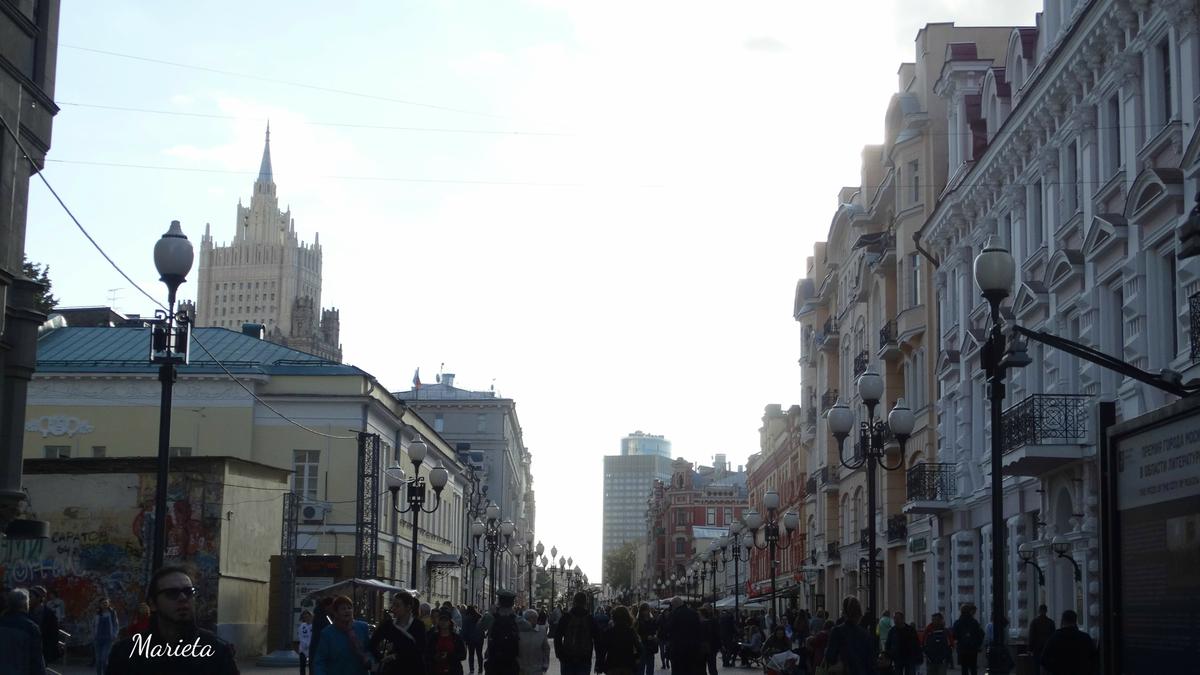 Apuramos nuestras últimas horas en Moscú recorriendo la que posiblemente sea su calle peatonal más turística, la calle Arbat. Plagada de tiendas, puestos o quioskos variados, muchos sitios para comer o tomar algo, y numerosos artistas callejeros.