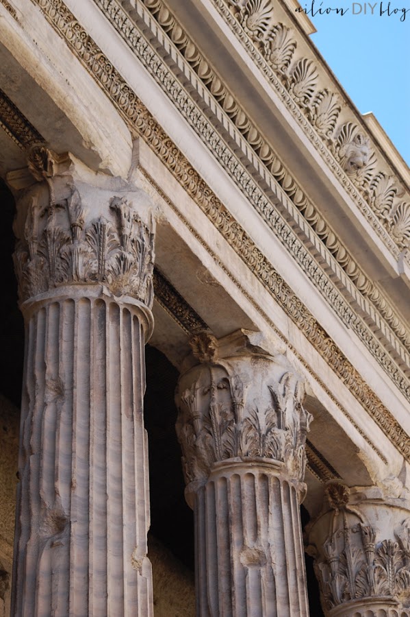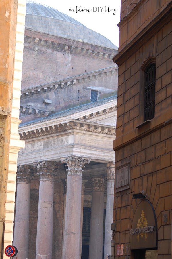 Bueno, vayamos a la visita al Pantheon, ese famoso edificio romano circular, con un óculo central cenital y donde está enterrado Rafael. Se accede a él por medio de un pórtico rectangular de estilo griego,que data desde mucho antes que el propio edificio circular.