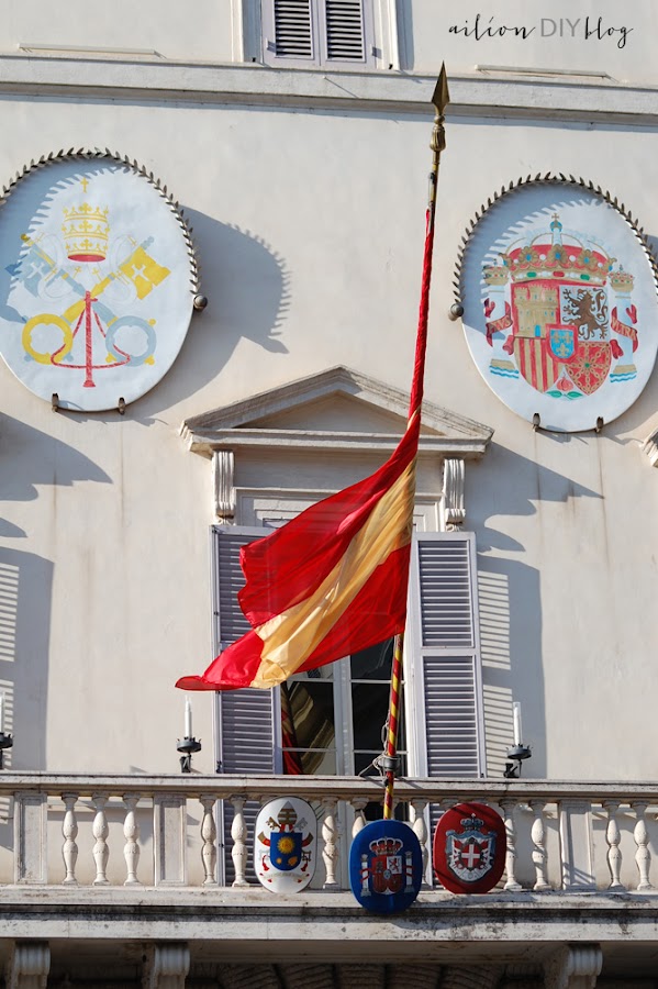 Es la plaza famosa por su escalinata y su barcaccia o fuente en el centro. En esta plaza es donde hacen los famosos desfiles de moda en esa escalera y se llama así por estar justo al lado de la embajada española. Si quieres verla casi desierta, llega sobre las 9.30 de la mañana como nosotros, podrás hacerte fotos casi a solas, jejeje. La foto que te muestro ya es sobre las 10:15, cuando empiezan los tours dominicales.