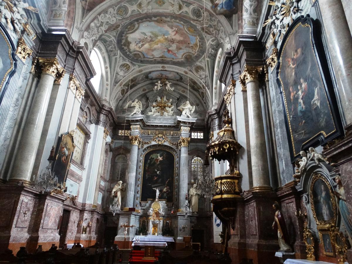 Salimos de nuevo a la Plaza Mayor y visitamos la Iglesia de los Jesuitas. Construida en realidad por los protestantes en 1638, pero entregada a los primeros por Leopoldo I en 1672. Un poco más allá nos encontramos con la Iglesia de los Franciscanos, que data de 1297 y es una de las joyas de la arquitectura gótica eslovaca, aunque su fachada fue reconstruida en estilo barroco.