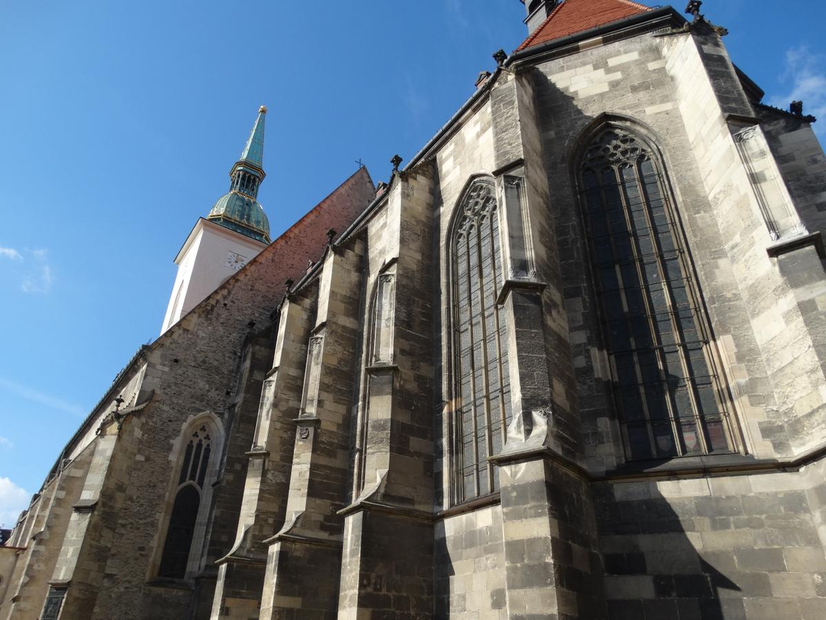 Iniciamos el descenso de la colina del Castillo en dirección a la Catedral. Por el camino nos encontramos con una edificación curiosa. La Casa del Buen Pastor, de estilo rococó y construida por un comerciante de Bratislava en el S.XVIII. Es tan estrecha que en cada planta sólo hay una habitación, en la actualidad alberga el Museo de los relojes. Desde aquí se puede contemplar también el Puente Ovni sobre el Danubio, otro magnífico punto para observar la ciudad desde las alturas.