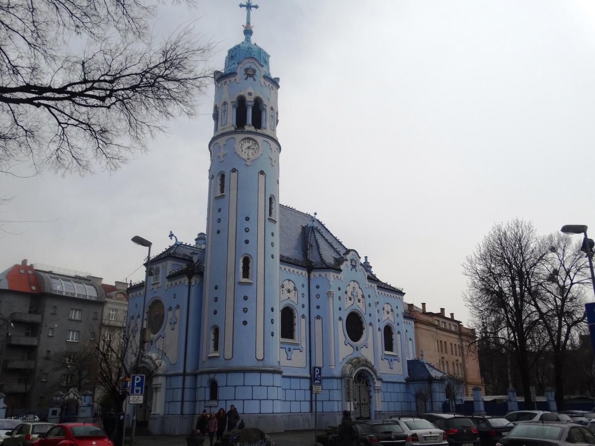 Decidimos desviarnos un poco de la ruta que nos marca el mapa que nos han dado en el hotel para acercarnos a contemplar la curiosa iglesia de Santa Isabel. Más conocida como la Iglesia Azul debido a su color, fue construida totalmente en estilo Art Nouveau entre los años 1909 y 1913.