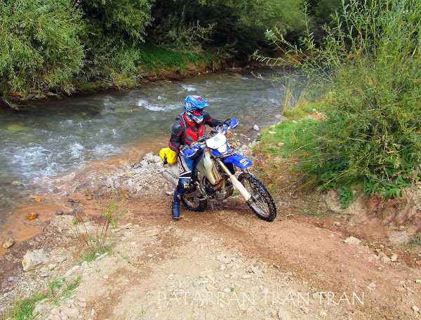 Marcos y su KTM EXC525, la sombra de Amarok. Aquí refrigerando la mecánica, que buena falta le hizo aquellos días.