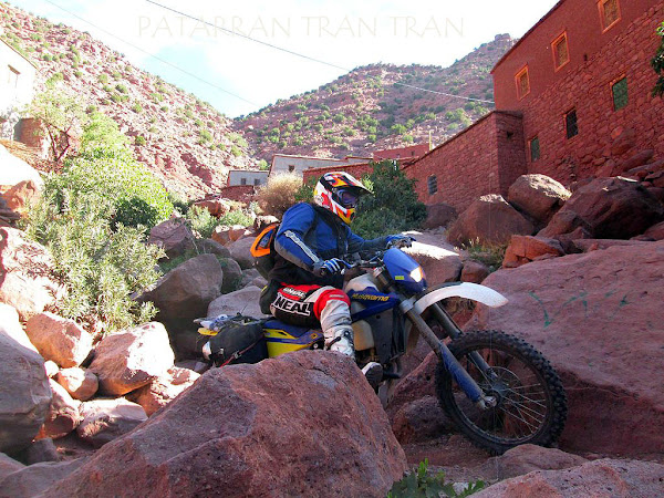 Fernando, debutante en Marruecos, con Husqvarna 510. En la foto, disfrutando de una "trialera urbana".