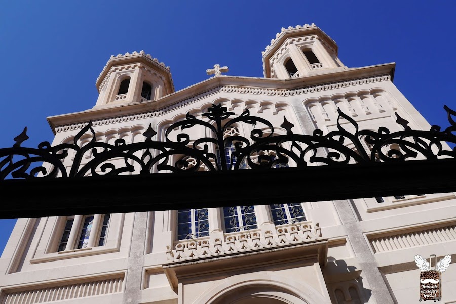 Iglesia de San Blas y la estatua de San Blas al frente, patrón de la ciudad.