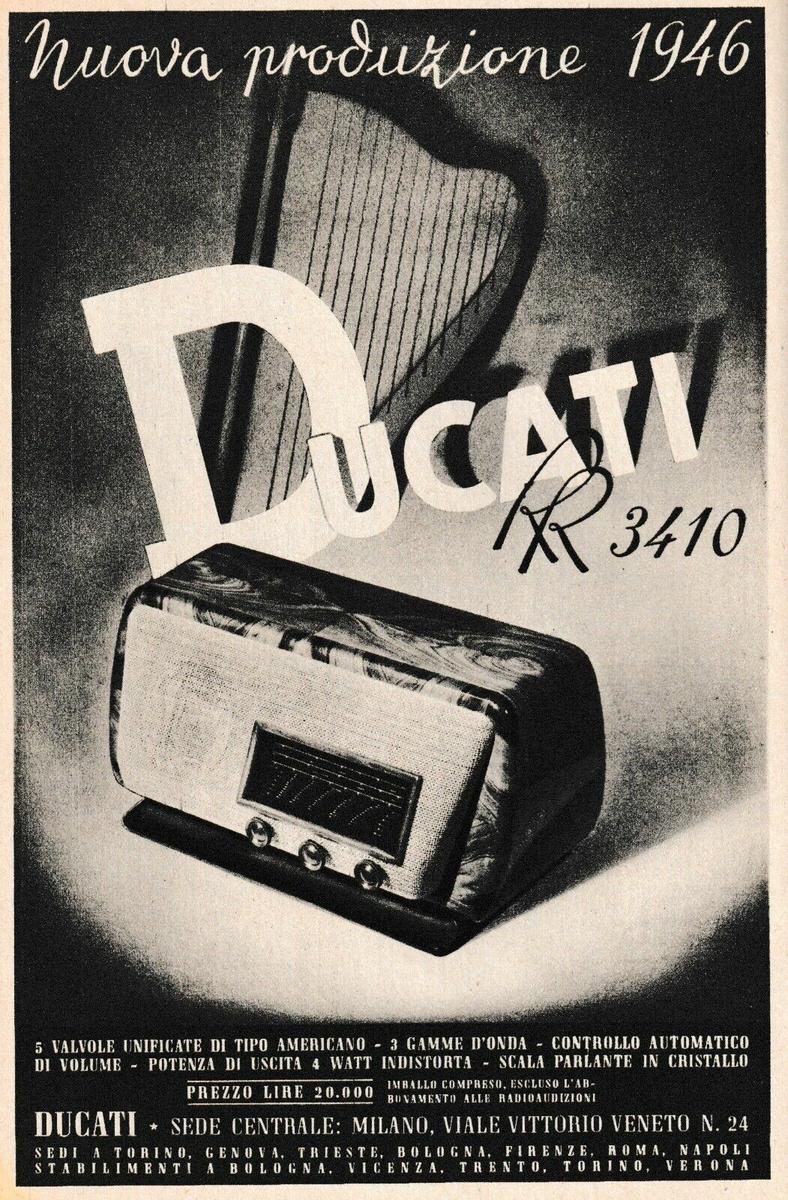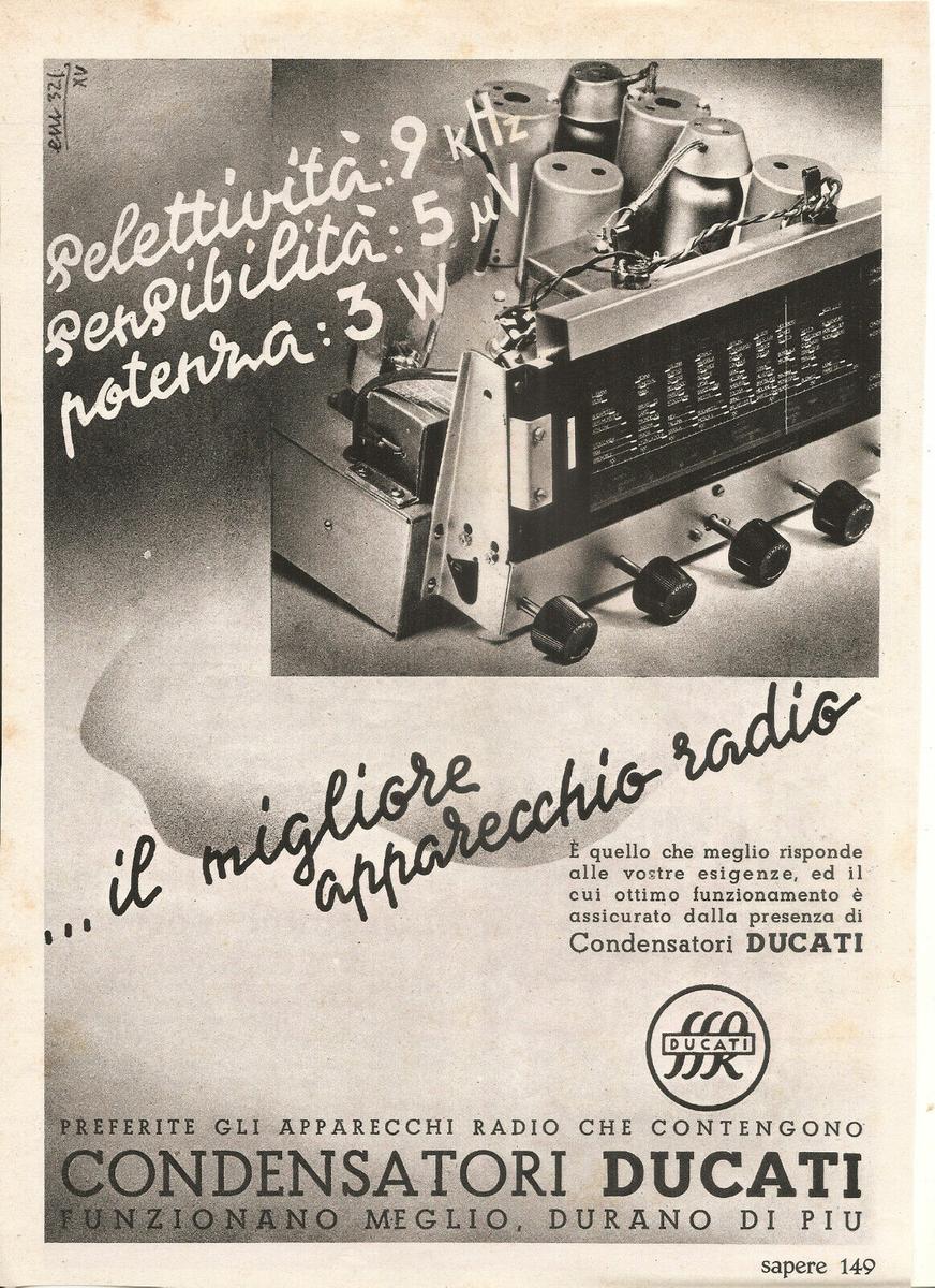 En 1924, Adriano Cavalieri Ducati, un brillante estudiante de física, se hizo famoso al lograr conectar Italia y Estados Unidos por radio con un dispositivo de onda corta que él mismo había creado. Bolonia atravesaba un período de gran agitación, con los primeros servicios de radiodifusión. No olvidemos que Bolonia era la cuna del aclamado inventor de la radio, Guglielmo Marconi (aunque en nuestro blog hemos cuestionado quien es el verdadero inventor de la radio)Tras el entusiasmo de este exitoso experimento, el 4 de julio de 1926 la familia Ducati fundó la “Società Scientifica Radio Brevetti Ducati”.