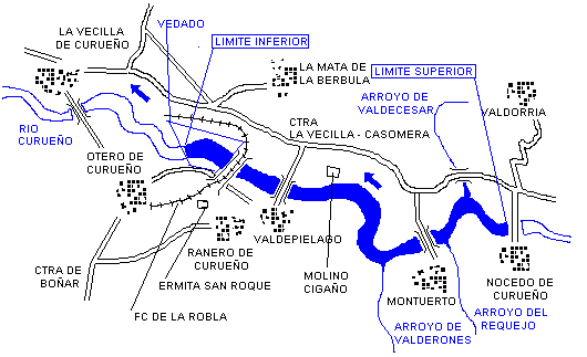 Este tramo acotado se encuentra entre las localidades de Nocedo de Curueño y la Vecilla, teniendo el límite superior en el Puente de Nocedo de Curueño y el inferior en la presa de la Vecilla, aguas abajo del Puente de a vía. Tiene una longitud sobre los 4,000 metros, la anchura media del cauce es de 18 metros y está a solo treinta cinco minutos de León. Sus mejores zonas están en la parte alta del coto.