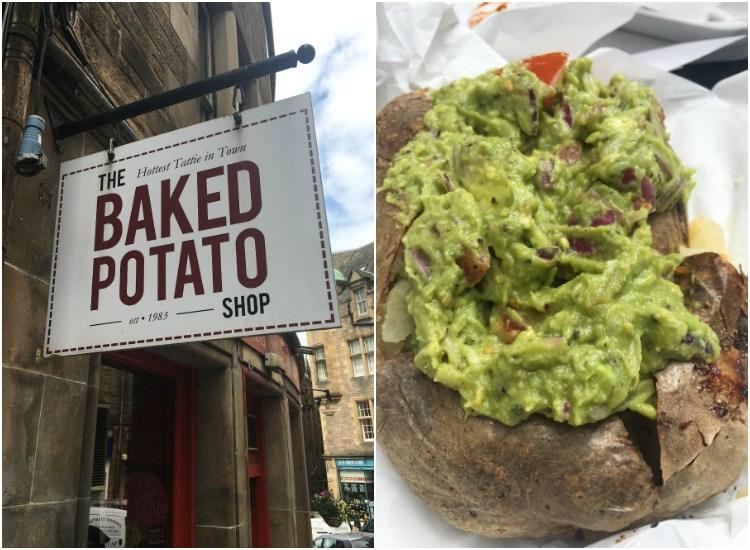 Baked Potato Shop (56 Cockburn St, EH1 1PB) similar al anterior en formato y precio. Unas papas horneadas que van cubiertas con el topping que tu elijas. Para bolsillos ajustados con mucha hambre (tienen unas papas enooormes). Prueben la que lleva guacamole, OMG. Aprox 6 pp