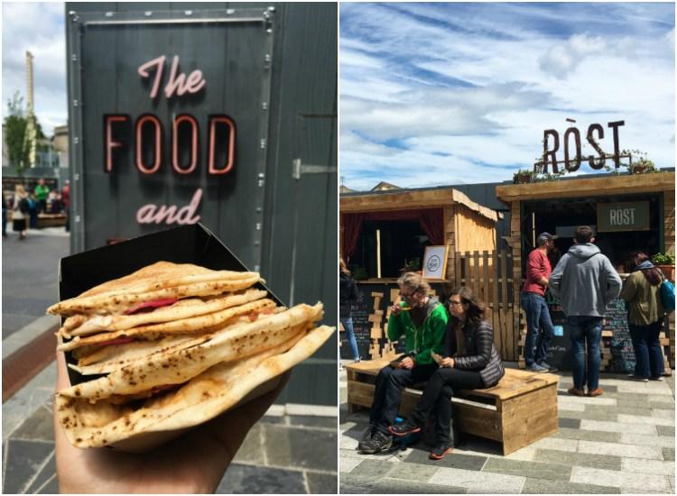 The food and flea market (Sibbald Walk, EH8 8FT) un mercadillo al aire libre de comida callejera que se instala todos los días a la hora de almuerzo (y de jueves a sábado hasta las 20 hrs). Hay comida callejera estilo sándwiches, pitas y crepes a buenos precios y mucha calidad. Aprox 7 pp