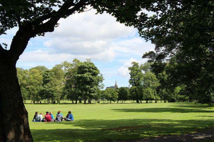 Al llegar fueron dos cosas que me llamaron especialmente la atención. La primera fue lo verde que es todo el paisaje. Un verde tan intenso que siempre que atravesaba algún parque me quedaba un rato contemplando los jardines y pensando en lo verde que era todo. Y lo segundo fue la arquitectura urbana, donde destacan las construcciones en piedra gris, una mezcla de arquitectura medieval y gótica que hacen que te sientas metido en medio de una película filmada en esa época.
